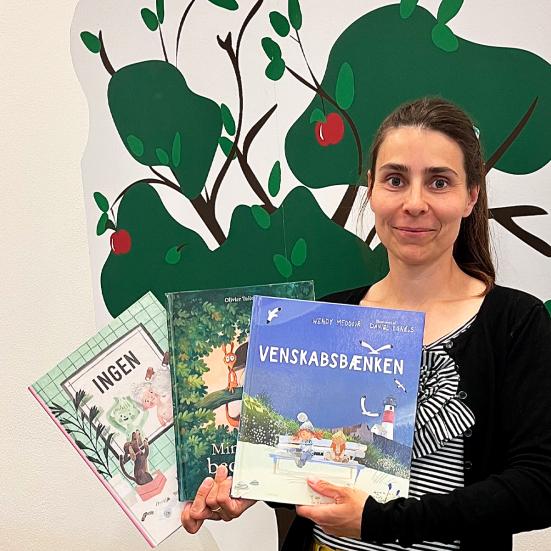 Kig efter de farvede klistermærker og vælg mellem bøger om bogstaver og tal, rim og remser, trafik og bøger om, hvad det egentlig vil sige at gå i skole.